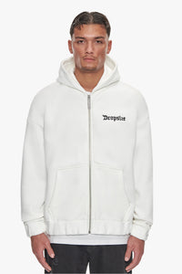 SUPER HEAVY OVERSIZE BLANK ZIP HOODIE CREAM WHITE