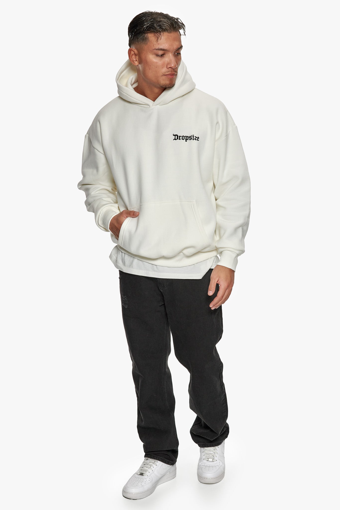HEAVY OVERSIZE EMBO HOODIE CREAM WHITE