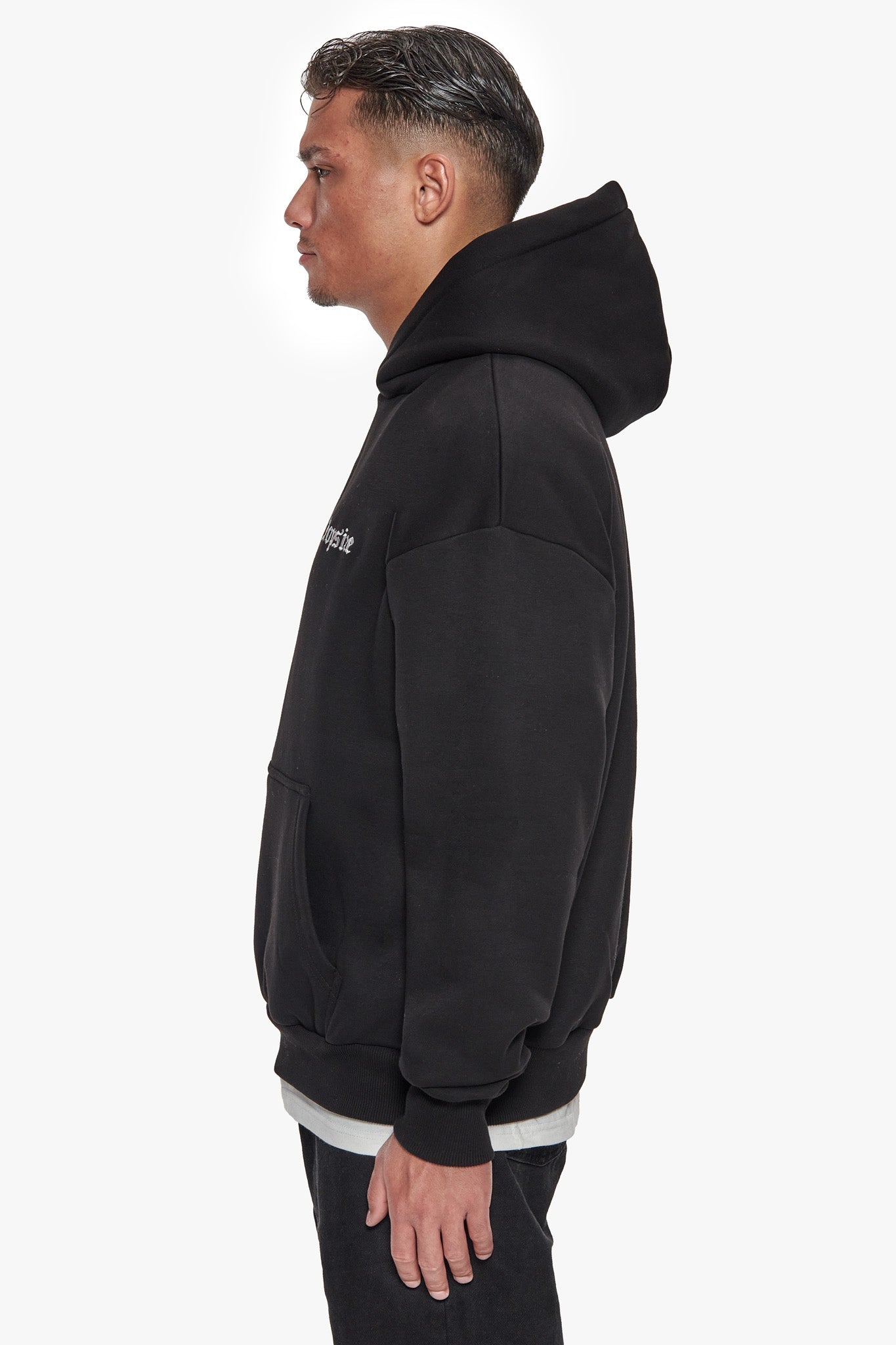 HEAVY OVERSIZE EMBO HOODIE BLACK