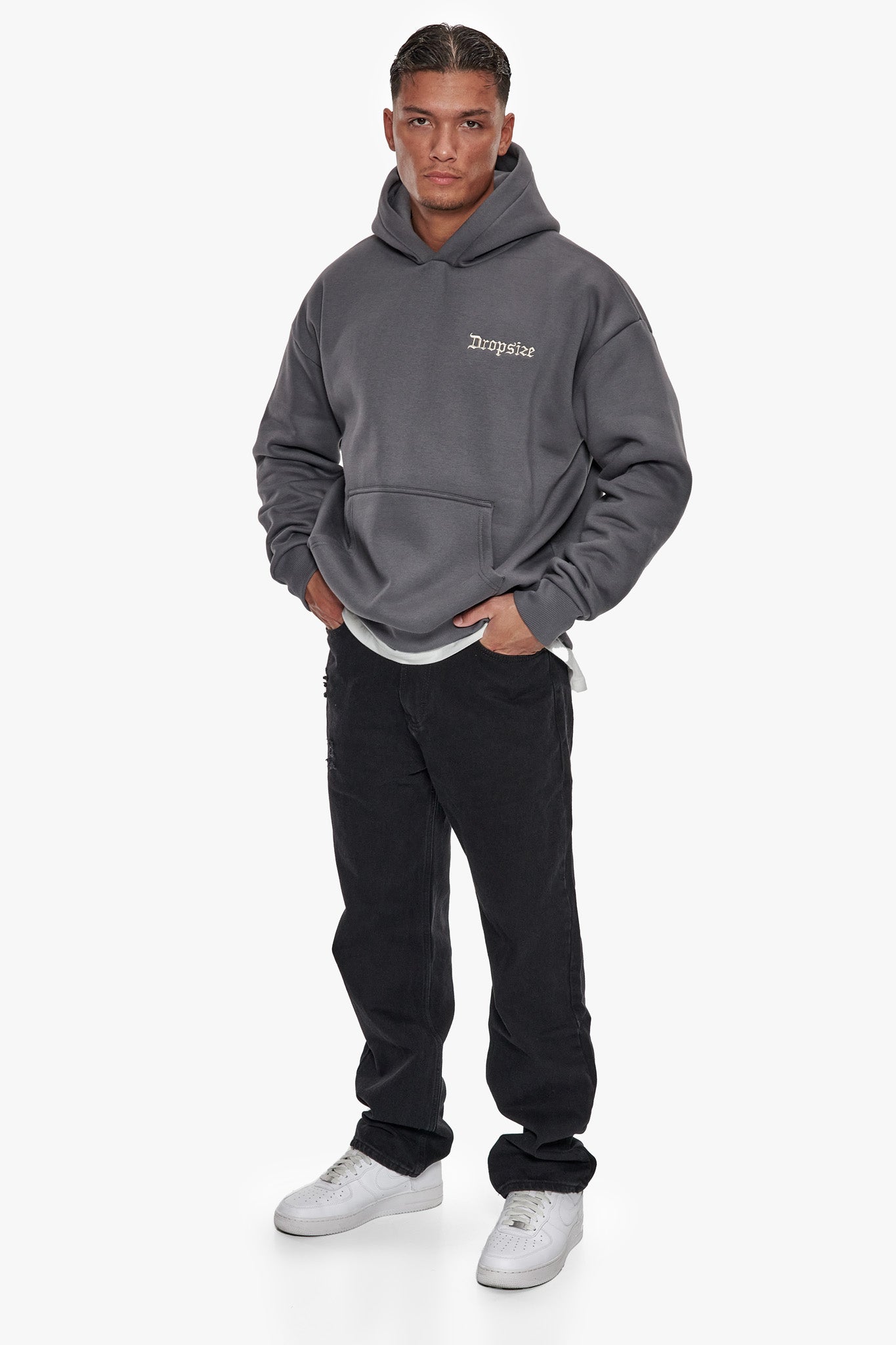 SUPER HEAVY OVERSIZE BLANK ZIP HOODIE WASHED GRAY