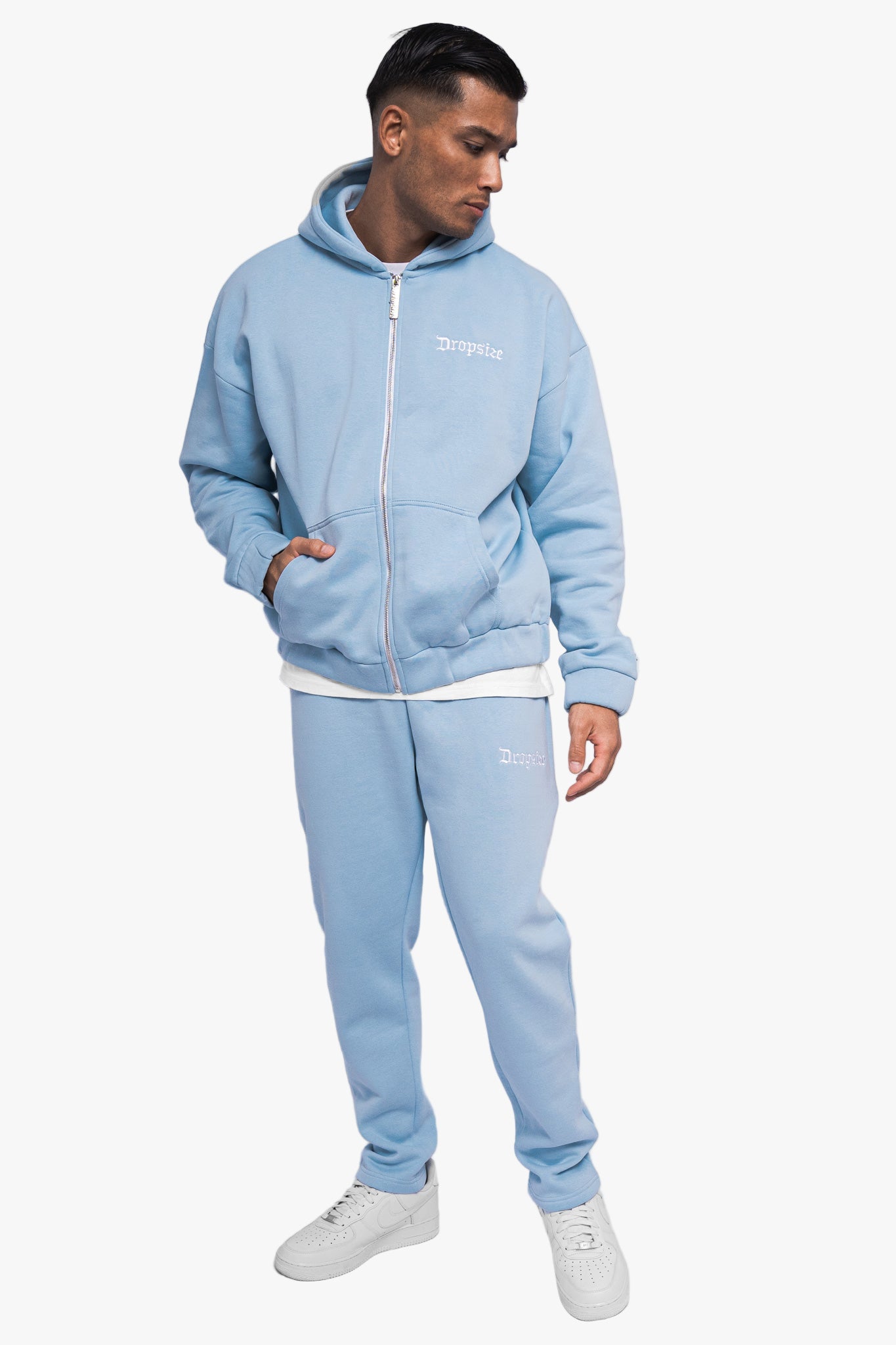 SUPER HEAVY OVERSIZE BLANK ZIP HOODIE BABY BLUE