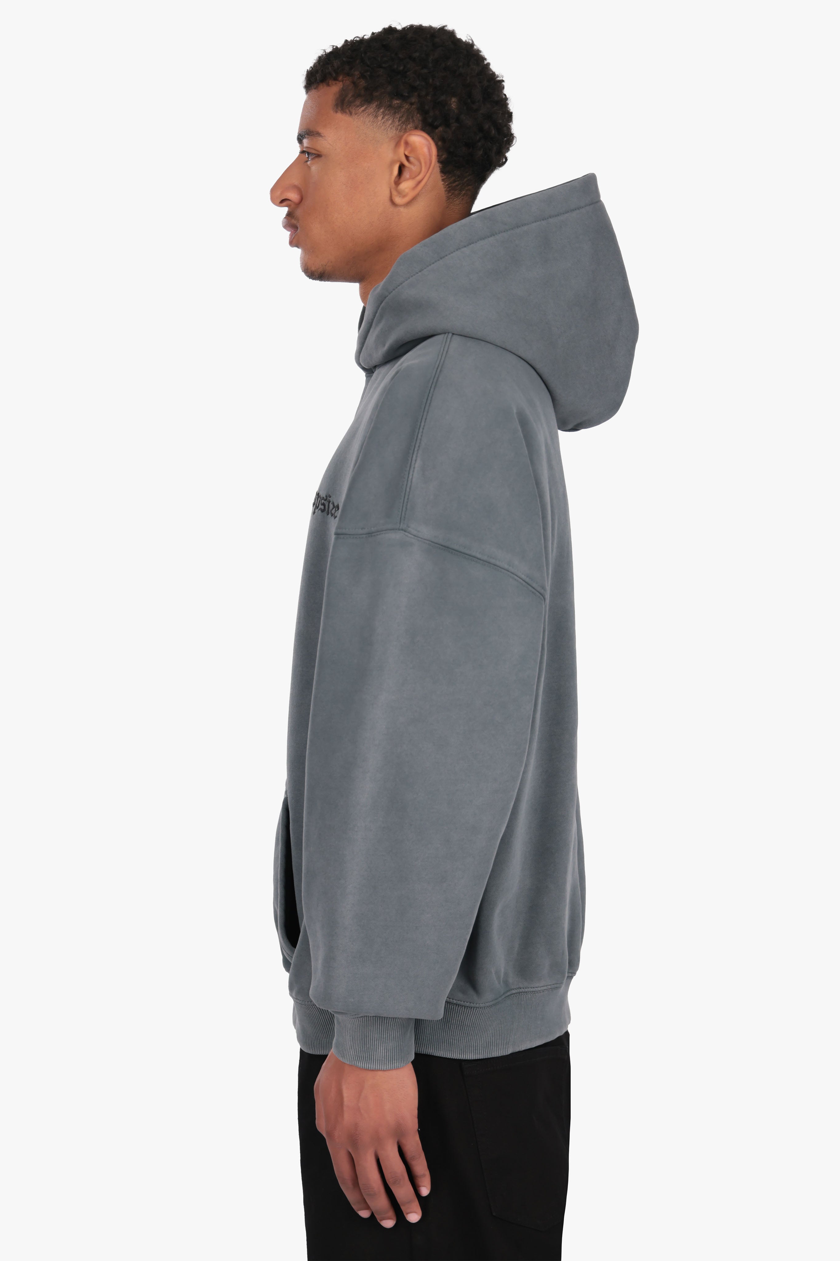 HEAVY OVERSIZED WASHED GRAY EMBO HOODIE