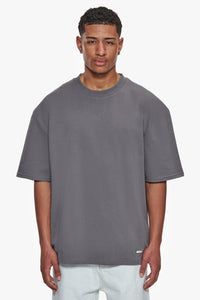 HEAVY OVERSIZE METAL PATCH BASIC T-SHIRT GREY