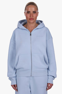 WOMEN BASIC COZY ZIP-HOODIE BABY BLUE