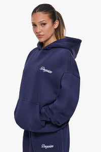 WOMEN CONTRAST EMBO HOODIE NAVY