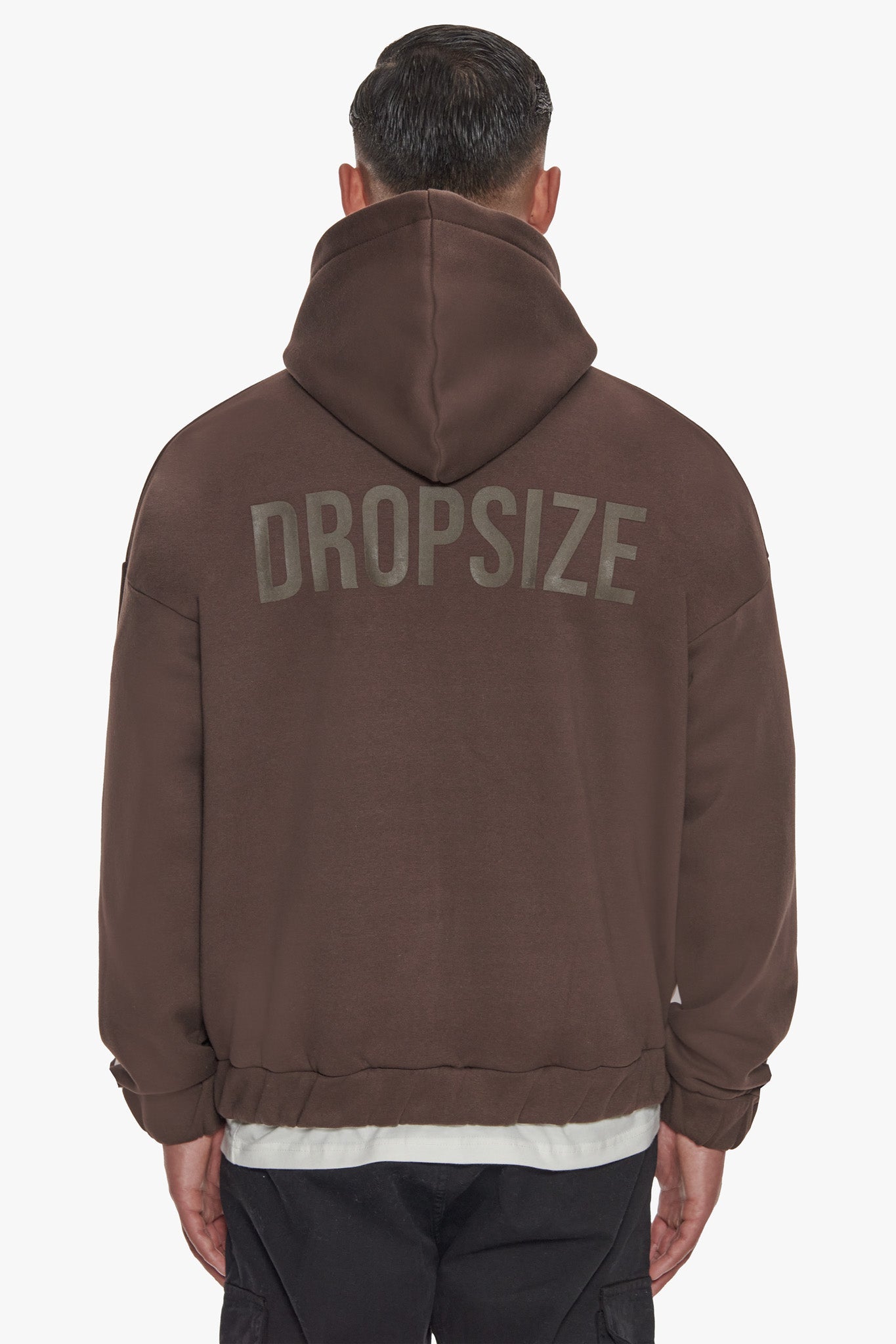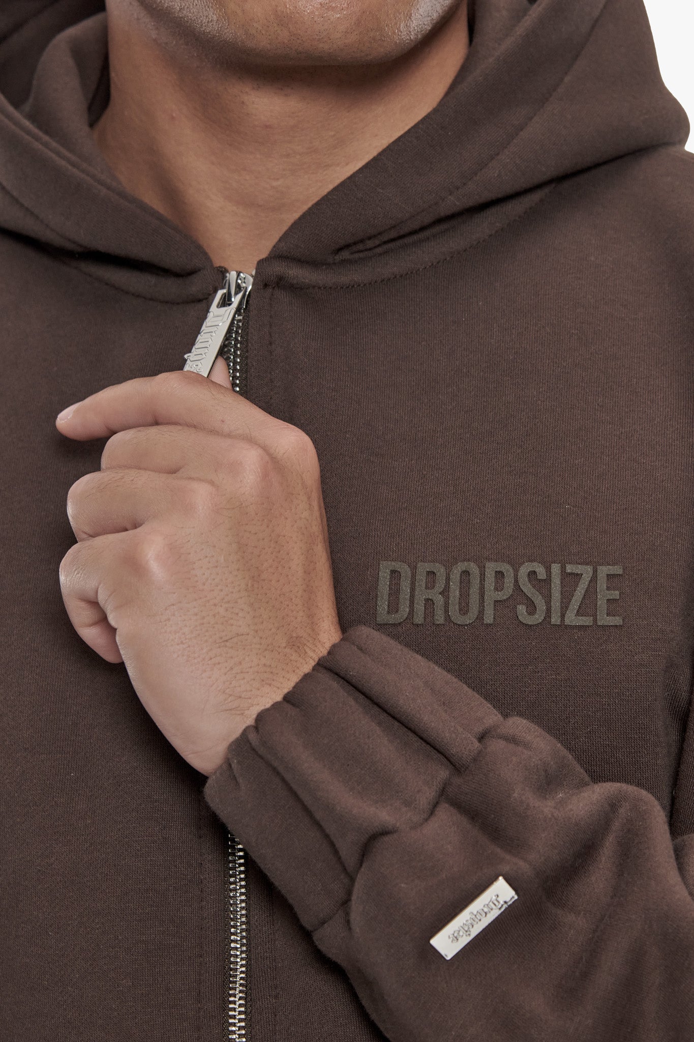 HEAVY OVERSIZE HD PRINT ZIP HOODIE CHOCOLATE