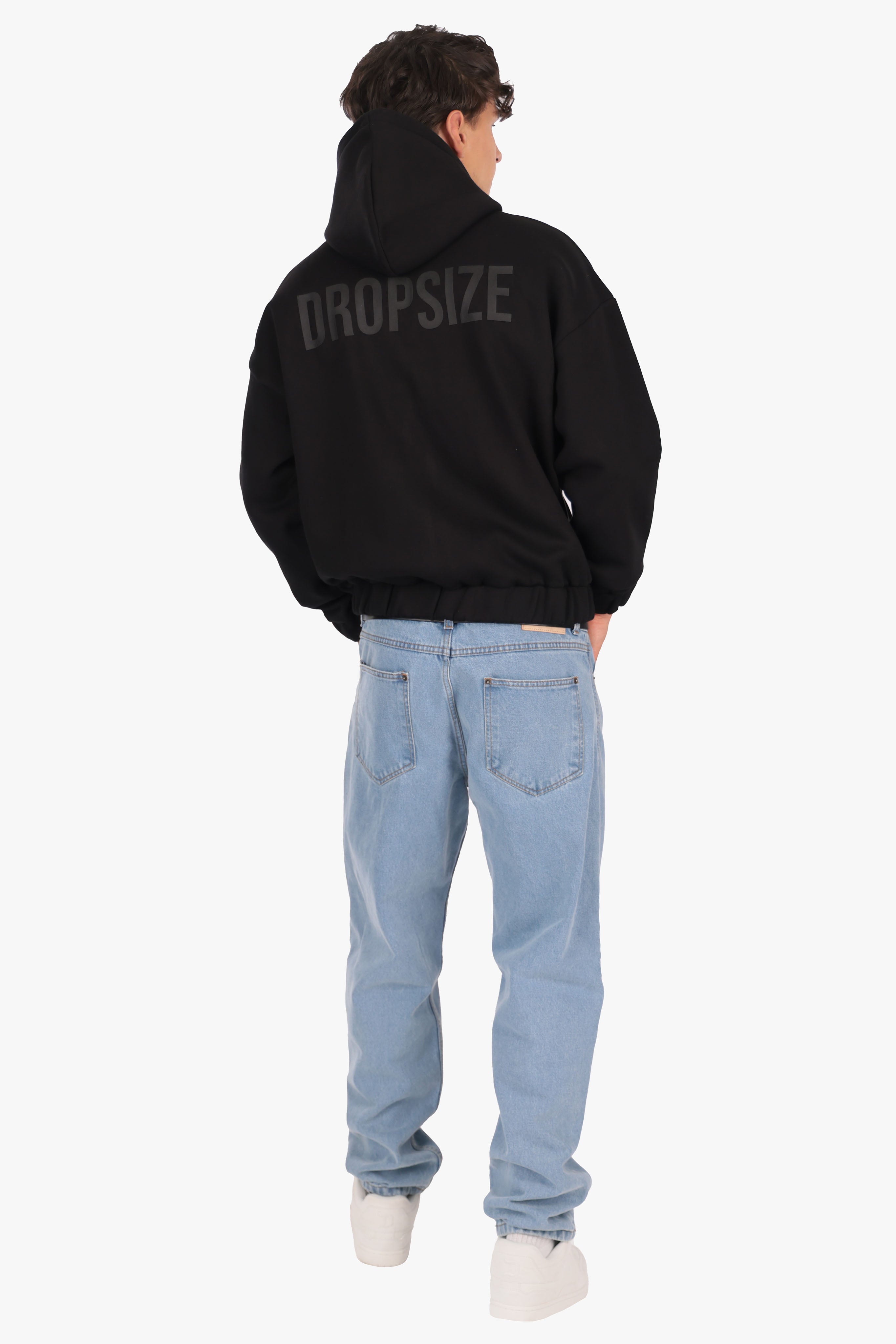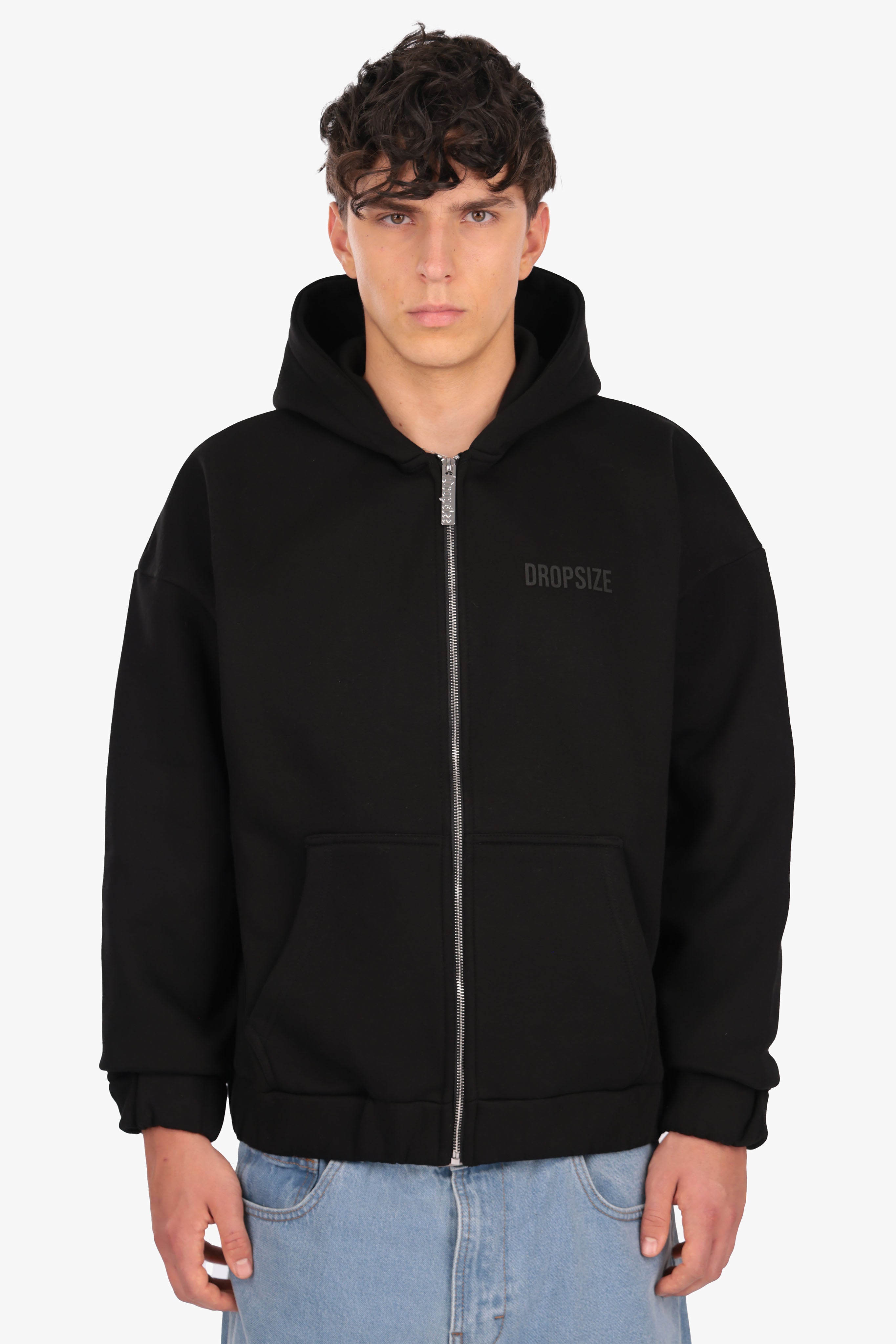 SUPER HEAVY OVERSIZE HD PRINT ZIP HOODIE BLACK