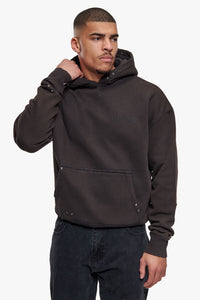STRONG RIVETS HOODIE WASHED DARK BROWN