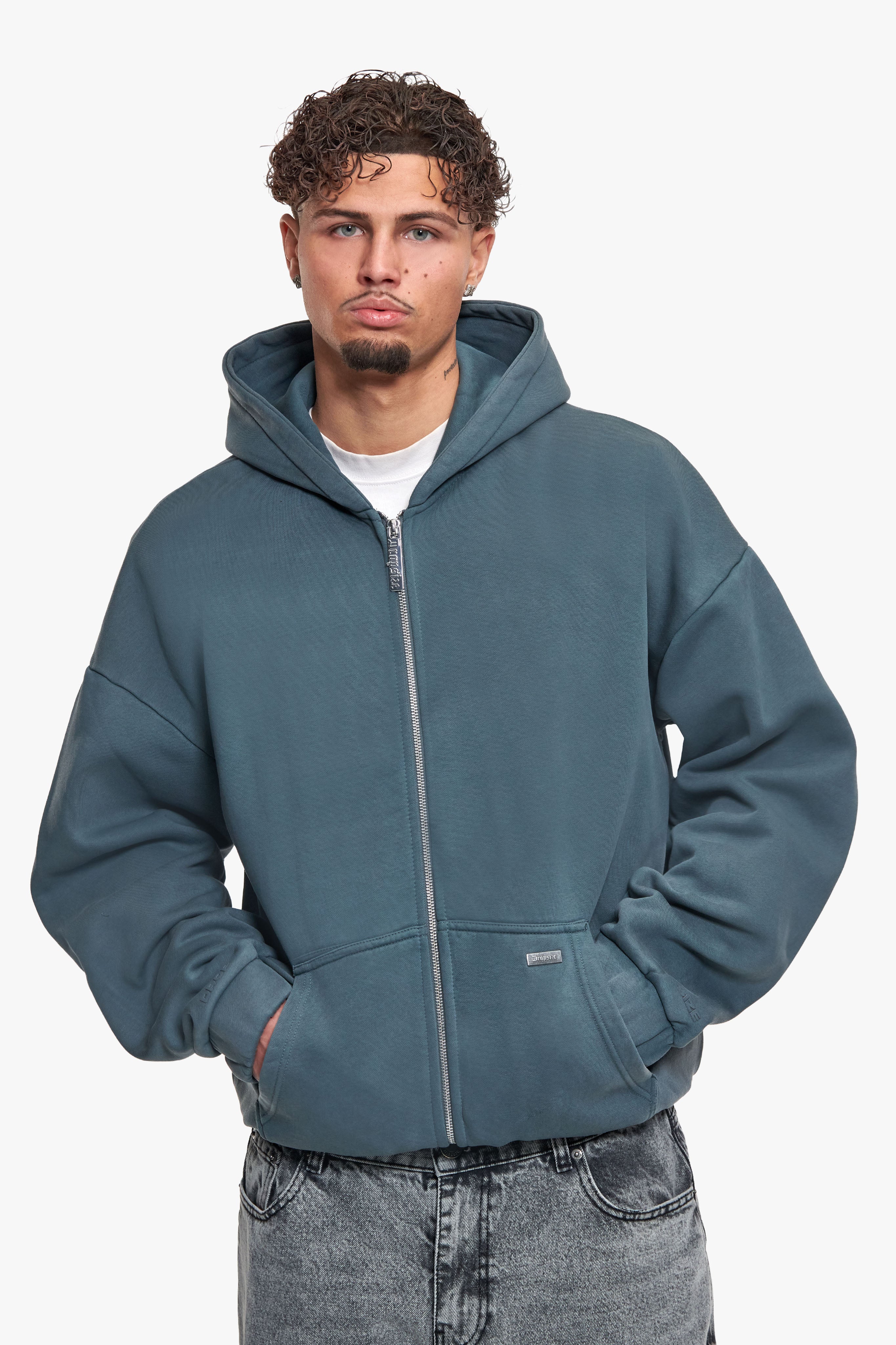 OVERSIZE METAL PATCH ZIP HOODIE VINTAGE GREY