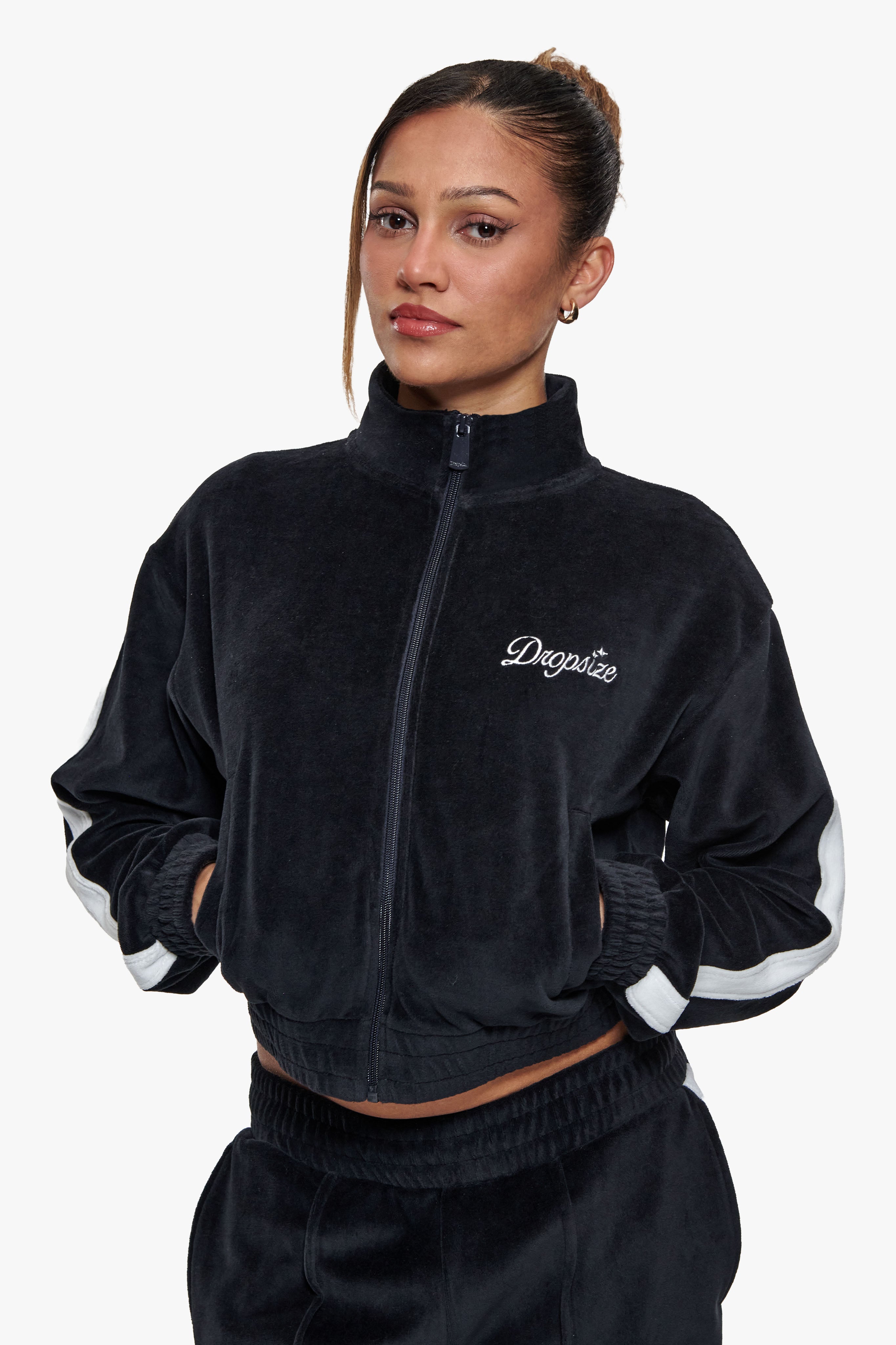 WOMEN VELVET ZIP JACKET BLACK