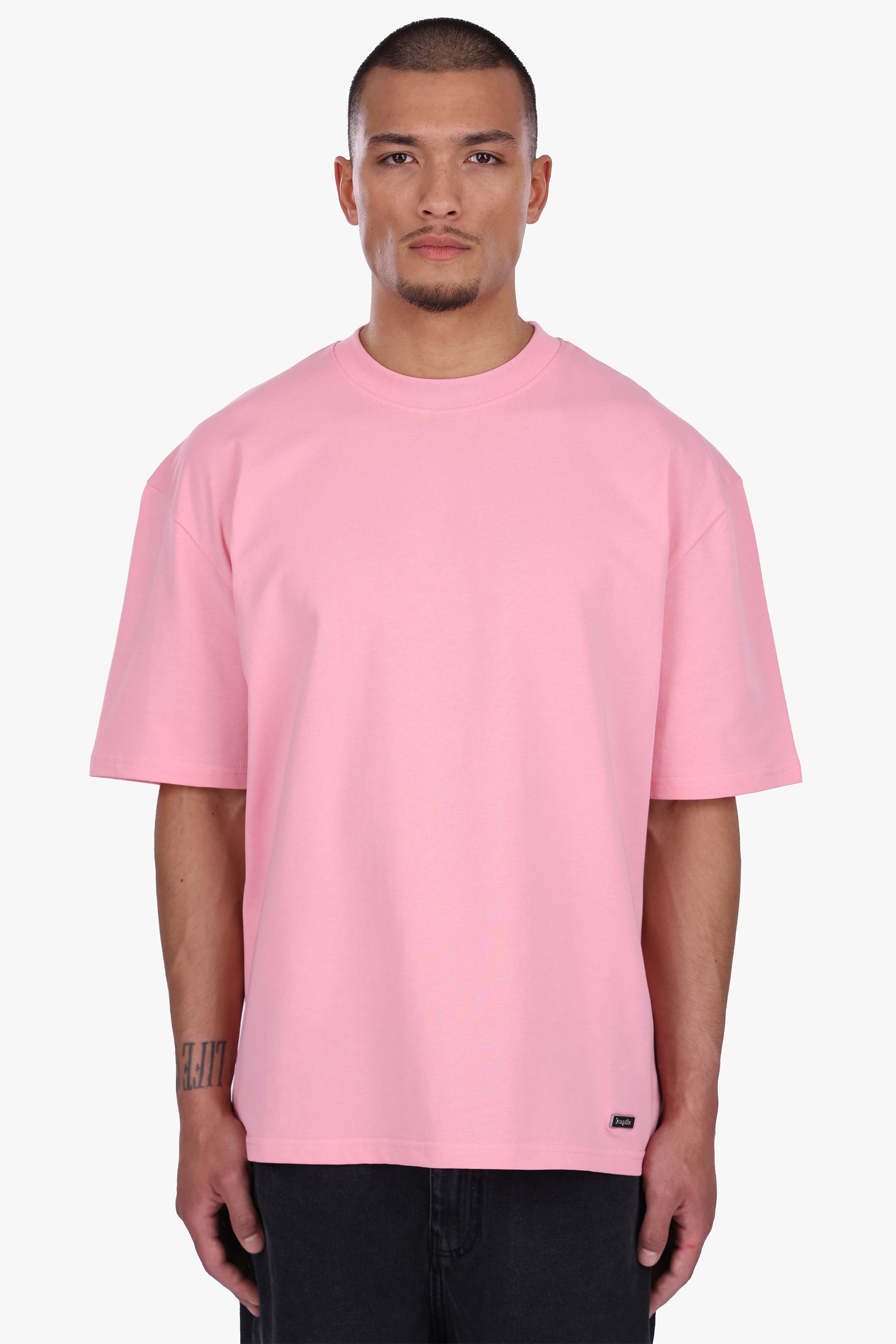 HEAVY OVERSIZE METAL PATCH BASIC T-SHIRT CANDY PINK